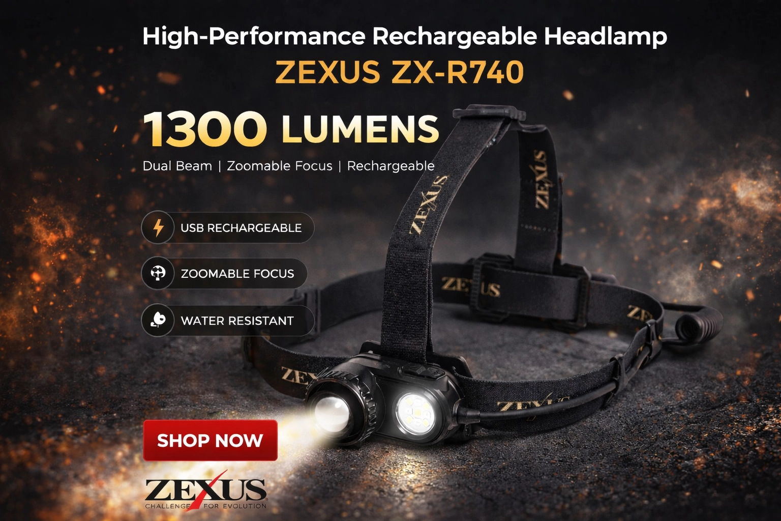 Zexus ZX-R740 1300 Lumen Rechargeable Headlamp